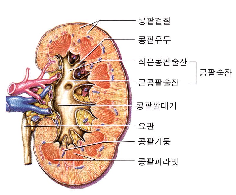 원래는 술잔을 의미하는 그리스어이다. 신체의 기관 중에 술잔모양의 기관을 부를 때 쓰는 말이다. 콩팥에서 만든 소변이 모이는 콩팥의 일부분. 여러 개의 작은술잔(minor calyx)가 있고 이것이 모여 2~3개의 큰술잔(major calyx)를 이룬다. 큰술잔이 모여 하나로 되면 이것을 콩팥깔때기라고 한다.