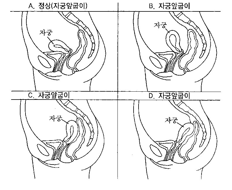 정상적으로 자궁은 앞으로 굽어 있다. 이런 상태를 자궁앞굽이라고 한다.